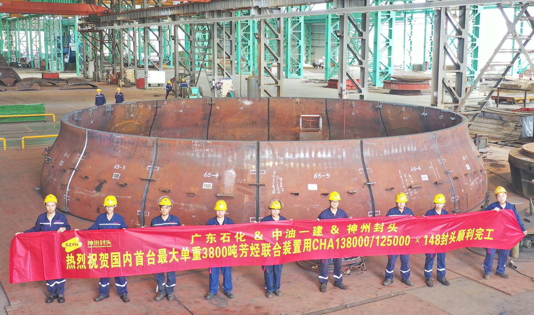 從最初500T壓機(jī),靠一錘一錘砸出封頭的小作坊,到現(xiàn)在直徑7500mm,厚度400mm以下整體一次成型,